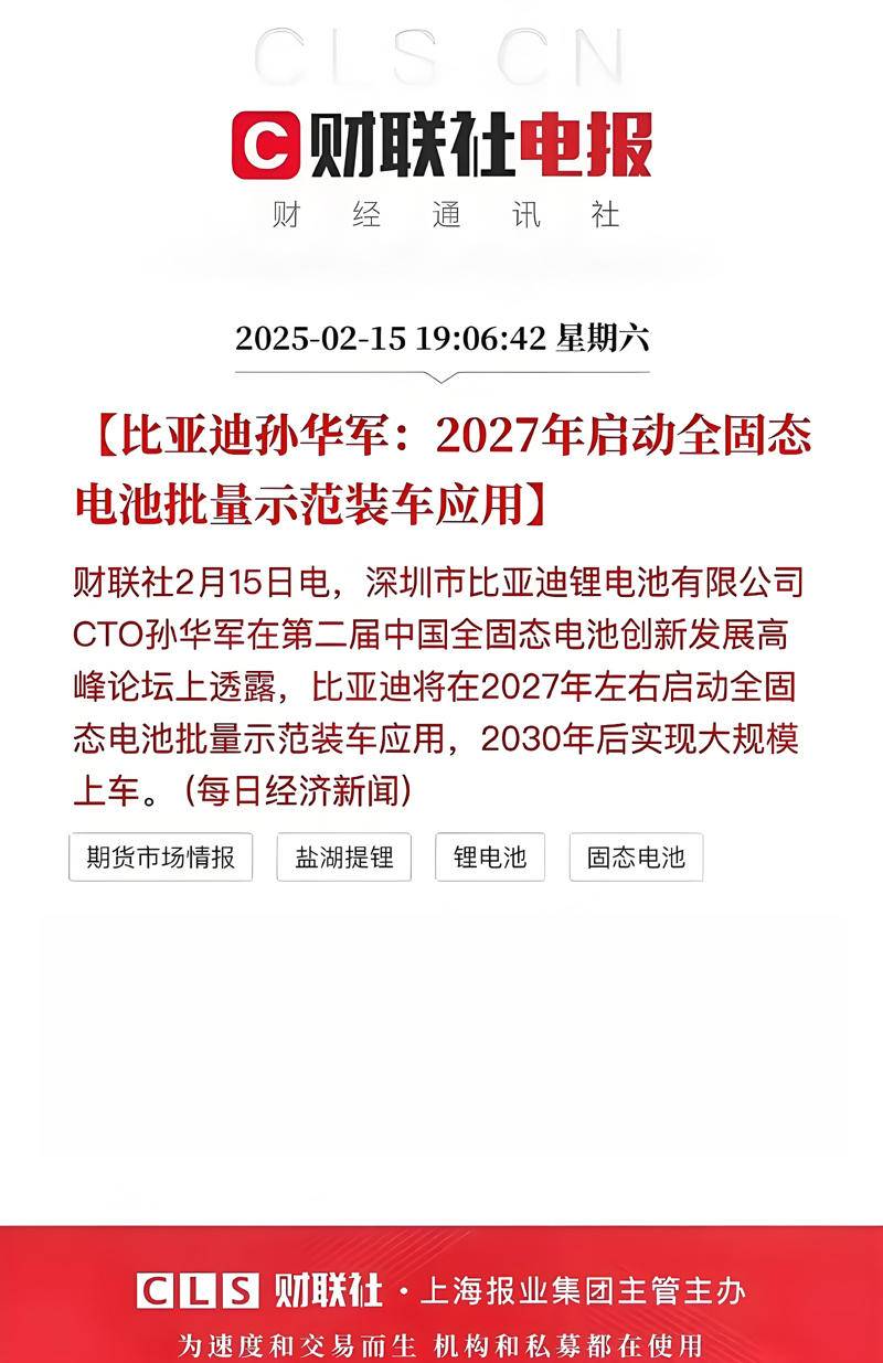 多家车商表示:2027年将会成为固态电池量产上市的”元年“!真的是这样吗?或仍需假以时日!不过随着固态电池量产上车时间的越来越近,新能源车企之间的新一轮的竞争也将全面展开,期间的激烈程度可想而知,不知又有哪家新能源车企撑不住而会轰然倒下!对于老百姓而言,固态电池大规模量产上车带来的实惠和安全便捷则要比现在的新能源车型强上不知多少倍!